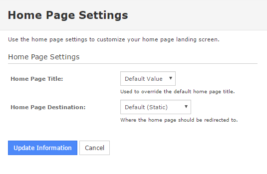 The Home Page Title allows you to either use the default value, or set your own custom value.
